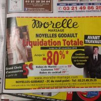 Bonjour à toutes. Bonne nouvelle pour celles qui n'ont pas encore leurs robes de mariée Liquidation totale chez morelle mariage de Noyelles Godault (62). Bon courage à toutes.