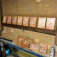 Enfin panneaux numéro de table terminés ! Mes crayons posca sont fatigués 🤣. Panneaux vernis par chéri sauf les deux derniers, qu’il doit terminer !