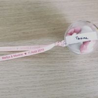 Nous avons pris la décision de mixer cadeaux invités avec des dragées et marque place. Je suis assez contente du résultat 😊 Un marque place fait avec un ruban personnalisé trouvé sur aliexpress.fr,...