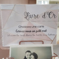 Ça y est enfin terminé... enfin... presque (j'ai remarqué une faute d'orthographe sur le haut du présentoir donc à refaire). Voici notre livre d'or ! J'ai peint le présentoir en cuivré (couleur du...