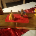 BonsoirVoici mon centre de tableEt mon essai de table de la belle et la bêteIl nous manque la théière et les pétales de rose rouge dans la cloche et pourquoi en mettre un peu sur la table.Il faut...