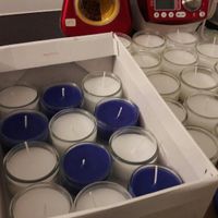 Je suis trop fière de mes DIY, ce week-end malgré mon bras en écharpe j'ai été l'usine à bougies et j'ai adoré. J'ai pratiquement fini toute les bougies à mettre sur les tables, il ne reste plus qu'à...
