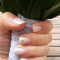 Manucure Hello voici ma manucure pour le mariage, un dégradé (baby boomer) avec des paillettes au bout. Vernis semi permanant! Je kiff