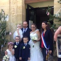 Ce fut une journée magnifique, pleine d'amour.Nous avons eu de la grêle juste avant mon entrée a la mairie et ensuite un grand soleil jusqu'au cocktail. Il y a eu quelques couac mais sans grande...