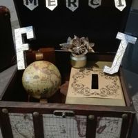 Petit DIY du jour :-) cadre pour l'arrivée de mon fils dans l'église et urne pour notre thème voyage.Vous en pensez quoi? Des choses à modifier ou ajouter ?Pour le cadre je pensais rajouter des choses...