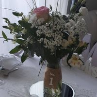 C’était l'heure de valider mes bouquets de centre de table avec la fleuriste. Je suis assez contente du résultat un mélange de IKEA pour les vases 1€, ALIEXPRESS pour les numéros en jute 2€50 les 10...