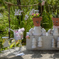 ... certaines de mes petites déco : Quelques petits pots de fleurs, de la peinture ... et le tour est joué : deux petits mariés ... à croquer ! "La vie en rose" D'anciens rideaux de Belle-Maman sorti...