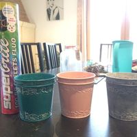 Mes pots de fleurs les bracelets fluo pour la soirée , mes chemins de tables et urnes offerte par ma maman