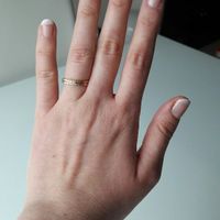 Voilà. J'ai enfin trouvé et ca me plais enormement. Simple avec quelques strass et sur le doigts ou cheri devra faire glisser l'alliance. Voici l'essai avec la précieuse en question.