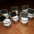 Bonjour voilà j'ai terminé tous mes pots en verre et boîte de conserve pour faire mes centres de table qui seront du même genre que la photo 3 ! Les rondelles de bois sèche dans le garage je suis...