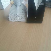 Voilà on a acheter les dragées au chocolat pour les mètre dans des boîtes en forme de caustard est robe de mariée ☺