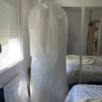 Elle est là ! Enfin ! Je suis allée la chercher avec mon fils (j’ai eu le plaisir de la re enfiler pour les vérifier les retouches, la longueur est bien mieux ! Un poil long sur les côtés mais faudra...