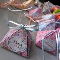 Pour remplacer les dragées, nous allons offrir des petits sachets de thé. Boîte fait à la main en origami ^^ Le thé sera à la fleur de cerisier pour respecter notre thème japonisant!