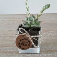 Et voilà mes cadeaux invités seront des jolies succulentes dans un petit pot en verre. Plutôt contente du rendu ... enfin avec le tampon centré ça sera quand même mieux 😀 Et puis celles des invités...