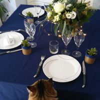 Hello Alors mon thème est bleu marine et doré avec touche de blanc. Je voudrais quelque chose d'élégant. Voici les photos de ma déco (photo 1) (le chat a validé 😄😻) les cocottes en papiers seront sur...