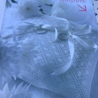 Ma mamie m’a proposé de me faire mon coussin porte alliances. Elle va peut être même en faire deux pour que chacun de mes fils apporte une alliance. A voir je vous mets la photo