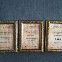 Voilà les petits tableaux qui iront sur la table du candy bar, du plan de table et du livre d’or