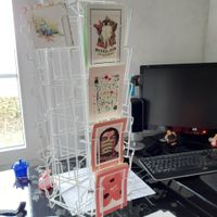 Coucou voici en photo ma réalisation du moment :porte carte postale trouvé d'occasion et c'est moi qui fait les cartes à l'aide de Canva. Ca nous servira de livre d'or 😉