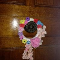 Coucou la comu! Je fais mes 1ers essais de déco florale et voilà le résultat très brouillon. Qu'en pensez vous? Plutôt en centre de table, sachant que nous serons au restaurant, ou déco de porte? Ou...